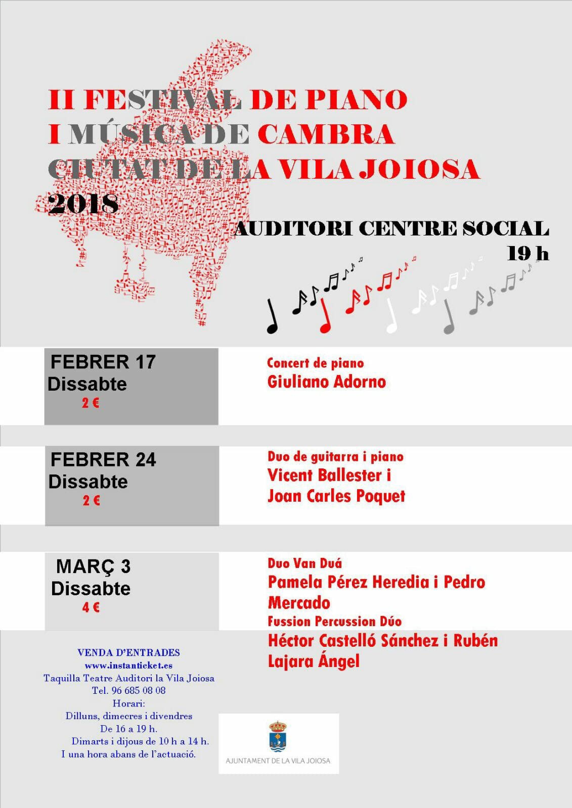 El próximo sábado 3 de marzo en el Auditorio del Centro Social de Villajoyosa (Alicante) tendremos el placer de ofreceros un concierto con obras de Bernstein, Moncayo y Piazolla.